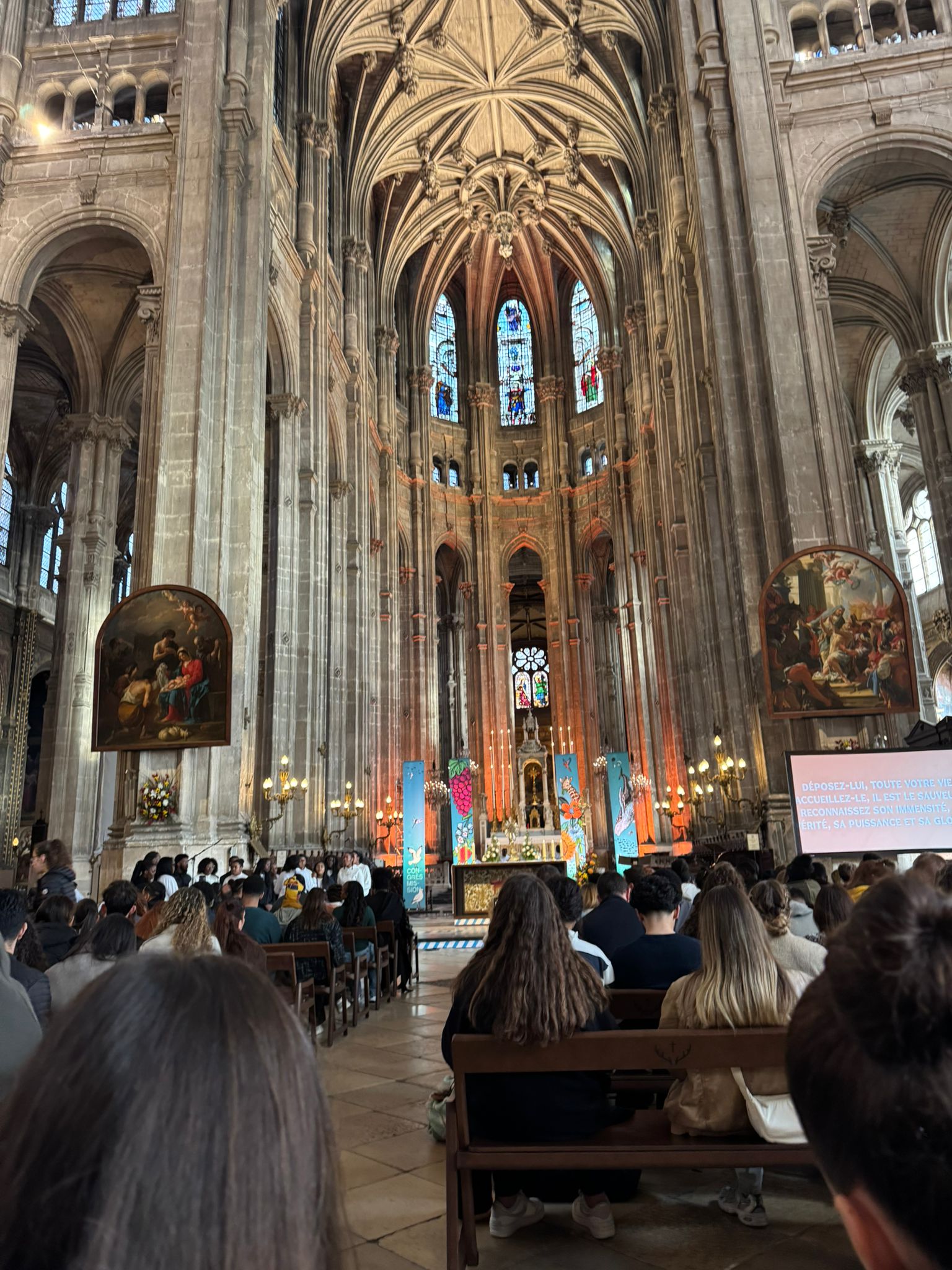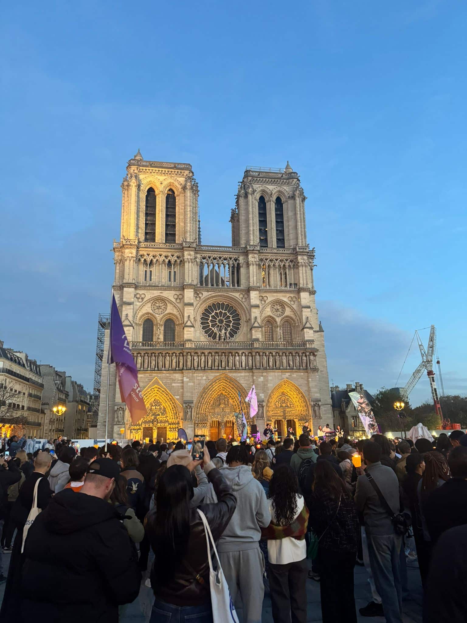 « La journée a commencé à Saint-Eustache, au cœur de Paris, par un beau temps de louange et de prière. Ensemble, nous avons ensuite en procession marché avec des milliers de jeunes vers Notre-Dame, puis jusqu’à Bercy, où plus de 6 000 jeunes étaient rassemblés pour célébrer le Christ.