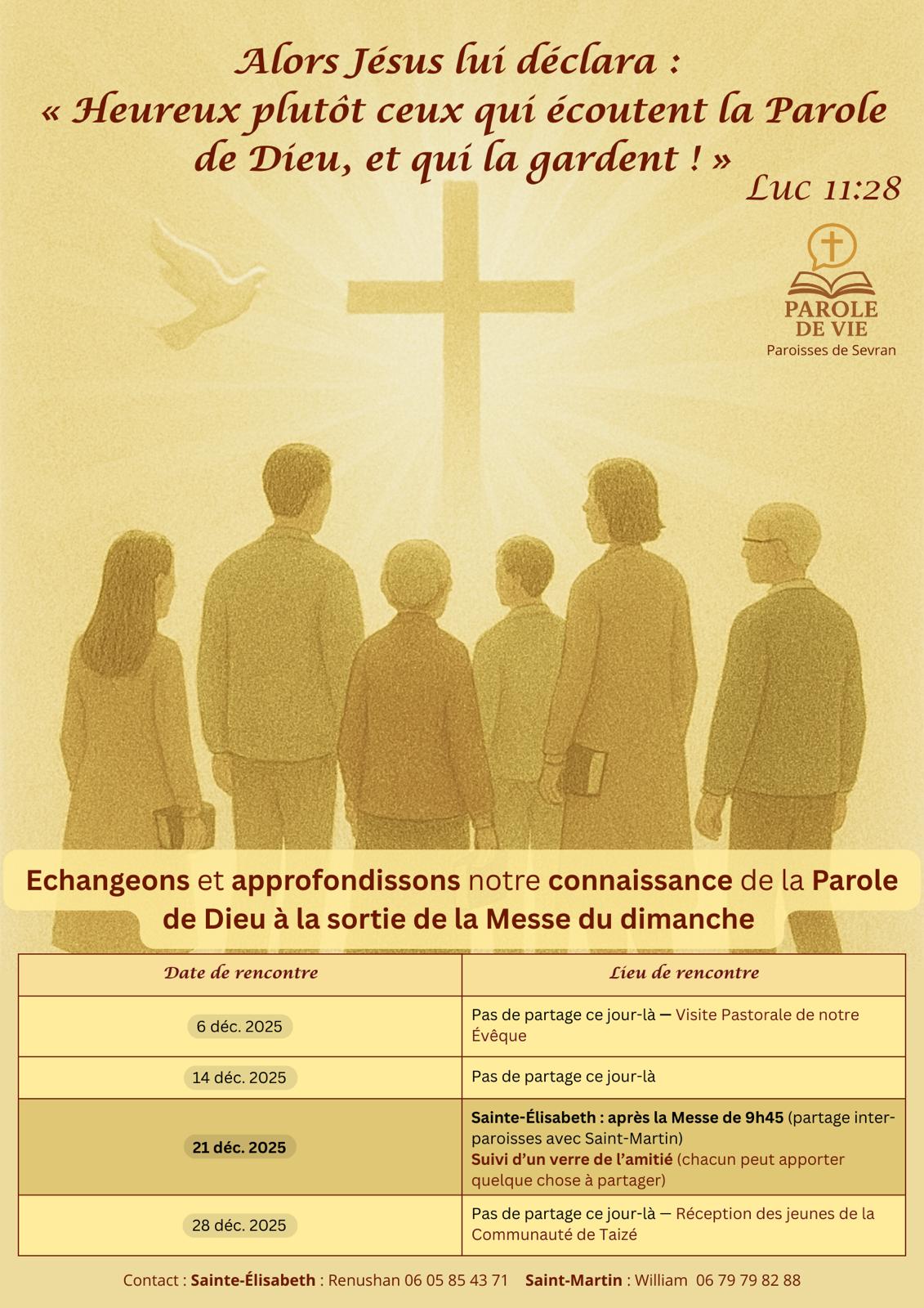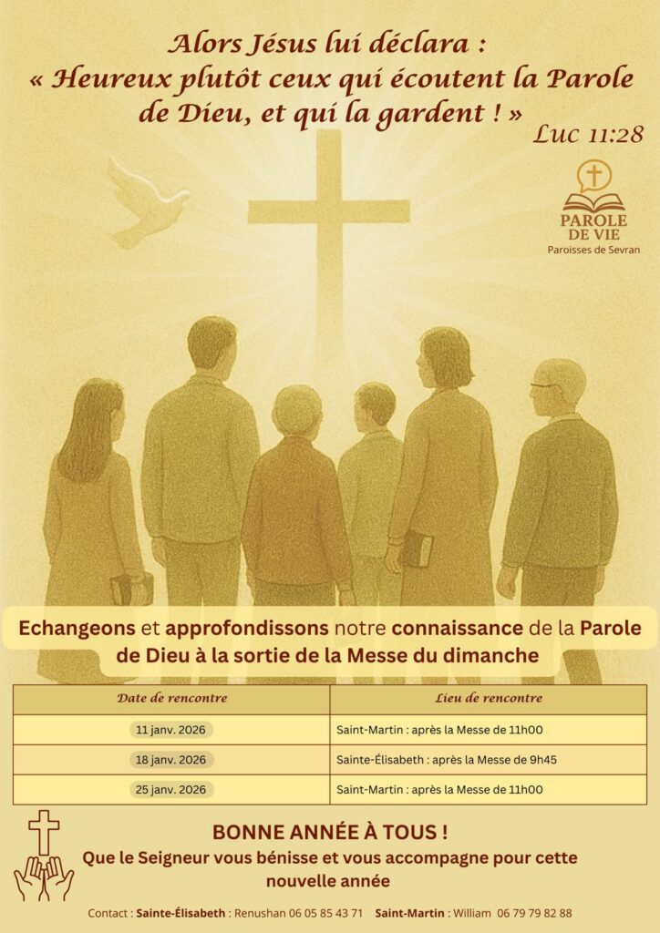 Après chaque messe, prenons un moment pour partager, échanger et approfondir ensemble la Parole de Dieu.