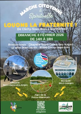 Le Diocèse de St Denis (SDRJ 93 et SDRM 93), la paroisse de Clichy sous Bois et la Grande Mosquée de Montfermeil sont heureux de vous convier à la 2ème édition de la marche spirituelle et citoyenne dans le cadre de la Journée Internationale de la Fraternité Humaine.